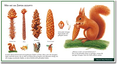 So ein Buch habe ich selbstverständlich auch, da werde ich gleich nachsehen. Obwohl Zweifel bleiben: Kann eine Maus so dicke Tannenzapfen auf einen Tisch wuchten?