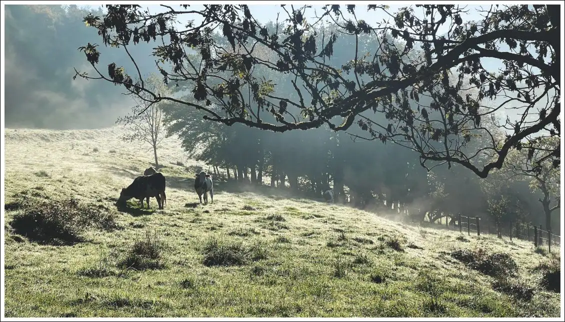 Vom Nachbardorf weht der dunkle Klang der Kirchenglocken herüber, in das sonntägliche Mittagsgeläut mischen sich heulende Motorsägen aus mehreren Richtungen, und irgendwo ganz in der Nähe bearbeitet jemand mit einem Vorschlaghammer Metall. In Gärten flattert gewaschene Wäsche an Leinen.