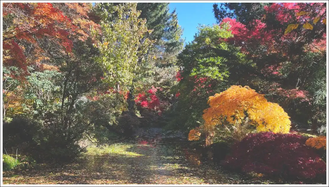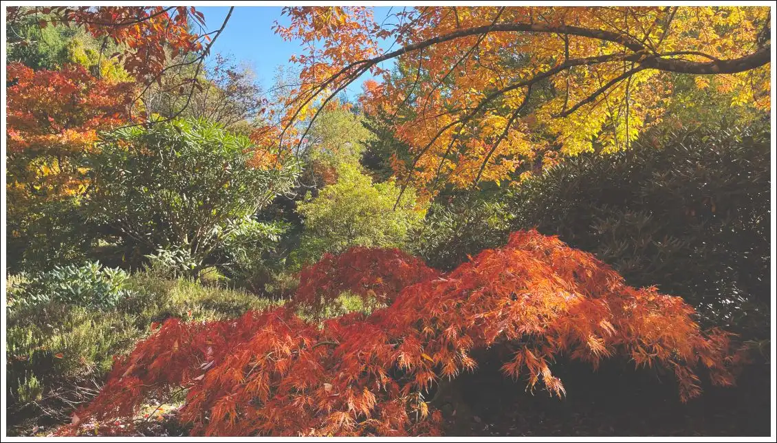 P.S. Ich hatte natürlich wieder nur das olle Händi dabei, Sie müssen sich das nochmal alles doppelt so farbig vorstellen, und noch eine angenehme Wärme dazudenken, dann passt es. Und wenn Sie mal in den Vogesen unterwegs sind, im Herbst oder im Frühjahr, hier (Klick!) finden Sie den Farbenrausch. Angelegt übrigens ab Mitte der Siebziger Jahre von einem Bankangestellten, dem die ewige Qualmerei seines Chefs (Chefs durften damals im Büro noch rauchen, die Älteren unter uns erinnern sich), – dem also die ewige Pafferei und die Niktoinschwaden dermaßen auf den Zeiger (und die Lungen) gegangen sind, dass er irgendwann den Bankjob hingeschmissen hat und stattdessen eine Arbeit an der frischen Luft suchte. Und ein passendes Grundstück zum Wohnen und Bepflanzen. Hat er beides gefunden. So einfach war das. Da auch nochmal drüber nachdenken, so als alternativer Lebensentwurf.