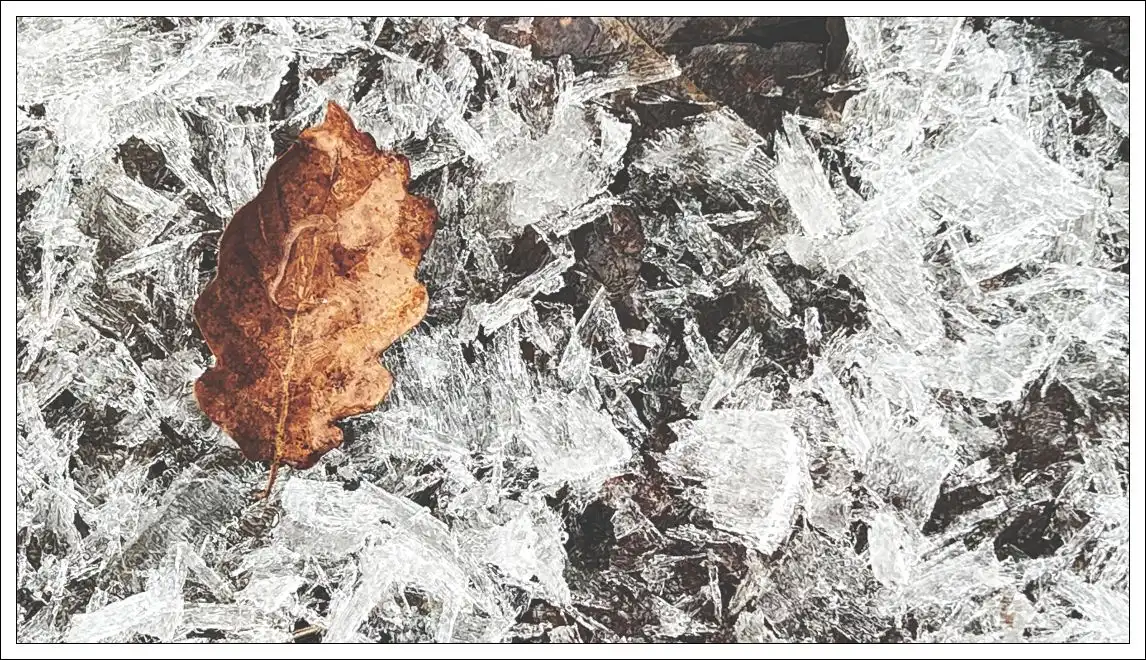 Auf Ästen und Zweigen hat der Dunst sich gefroren festgekrallt, das sieht sehr fotogen aus, aber jedes Mal, wenn ich unter einem Baum hindurchgehe, je-des-mal, kommt ein kleiner Windstoß, und wie winzige Glasscherben fällt der eisgewordene Nebel klirrend auf mich, auf den Mantel, auf den Kopf, ins Gesicht, nass und kalt in den Kragen. Ja, danke, Du mich auch, denke ich in unbestimmte Richtung.