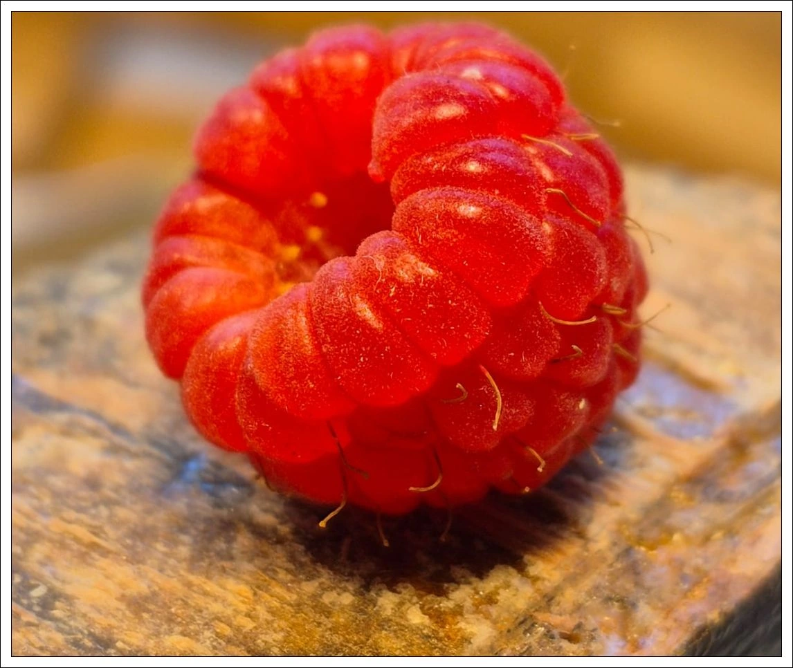 Die neuseeländische Cousine schickt ein Foto einer dicken roten Himbeere, die sie soeben im Garten geerntet hat, der vielversprechende Anfang ihres Sommers, man kann die Wärme und die Süße förmlich spüren. Ja, danke, Du mich auch, denke ich schon wieder.